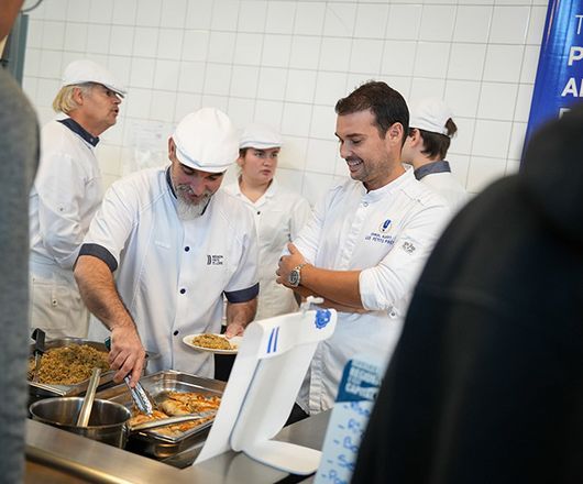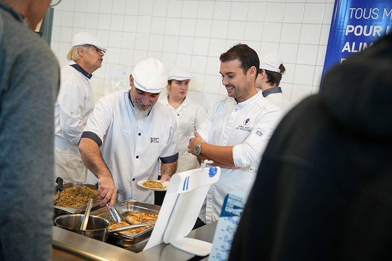 À l’occasion de la « journée des chefs » durant laquelle l’ensemble des chefs de restauration de ses lycées publics ont été invités en avril 2025 pour une journée d’échanges et de formation inspirante, un menu de de restauration scolaire a été sublimé par un chef étoilé. Charles Bernabé, chef étoilé du restaurant Les Cadets à Nantes, a ainsi cuisiné devant la centaine de chefs présents : en proposant un croque aux œufs, un poisson avec risotto d'orge aux herbes et une crème de chocolat au thym, il a fait la démonstration qu’un menu de cantine équilibré peut ravir les papilles et éduquer les jeunes à une alimentation de qualité, sans pour autant faire augmenter le coût de production. Reportage.