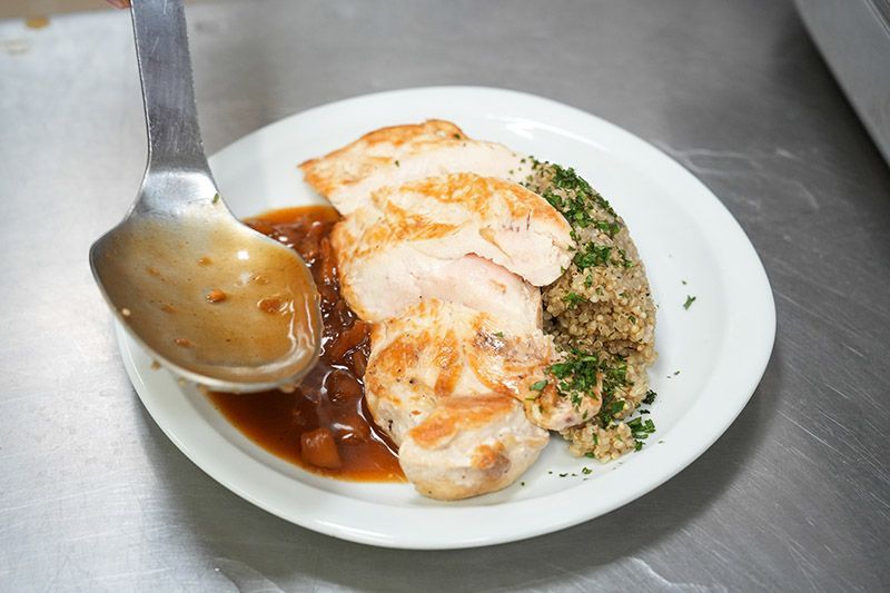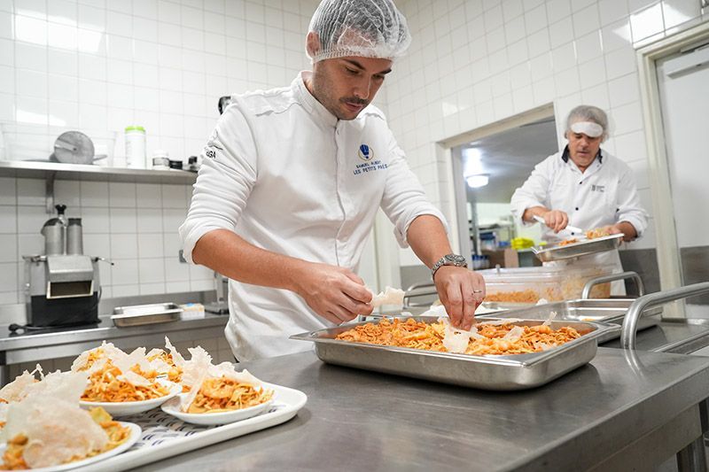 « La recette d’un fait-maison réussi ? Travailler le goût, à travers les sauces, les cuissons, le choix des produits. Même avec des plats végétariens, il est possible d’être créatif. Je travaille depuis longtemps autour de l’approvisionnement en produits locaux. On se sert beaucoup de la plateforme Approlocal, qui nous permet de savoir tout de suite d’où viennent les produits. » Qu’en pensent les lycéens ? « Ils adorent, évidemment ! »