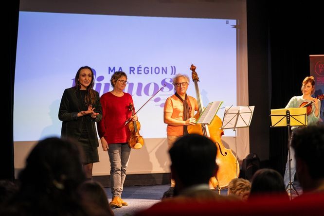 « Qui a déjà assisté à un concert de musique classique ? » La question est posée par Alexandre Thébaud, conseiller régional délégué à la culture et au patrimoine. Quelques mains se lèvent dans l’auditorium du lycée Notre-Dame de Challans. « Profitez de ces instants pour découvrir ces œuvres, les apprécier, échanger avec les artistes ». Voilà résumé l’ambition de l’opération Ma Région virtuose, celle d’offrir l’excellence musicale à tous les Ligériens, notamment les publics lycéens, en proposant d’amener la musique classique au plus près des jeunes. Une initiative régionale illustrée ce jour-là par l’Orchestre national des Pays de la Loire (ONPL), dont trois musiciens – Sophie Brière (alto), Pascale Vilette (violon) et Eric Costa (contrebasse) – sont venus partager bien plus qu’un simple moment musical.