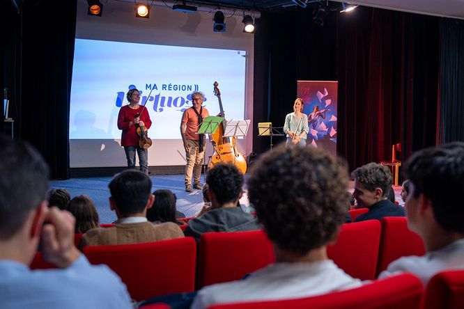 20 séances dédiées aux lycéens sont assurées par des trios de musiciens de l’Orchestre National des Pays de la Loire. Le format participatif, l’accès direct aux musiciens professionnels et la proximité transforment ces représentations en véritables rencontres artistiques qui permettent aux jeunes d’aborder la musique classique autrement.
