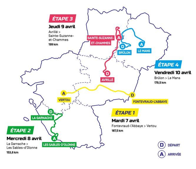 Le Région Pays de la Loire Tour 2026 s’élancera le 7 avril prochain pour quatre étapes dont le tracé illustre à la fois la richesse et la diversité du patrimoine naturel et culturel régional. Huit villes départ/arrivée sont ainsi partenaires de la course. Dans les villages départ, des animations sont prévues pour le grand public autour des thématiques vélo et sur les stands des partenaires.